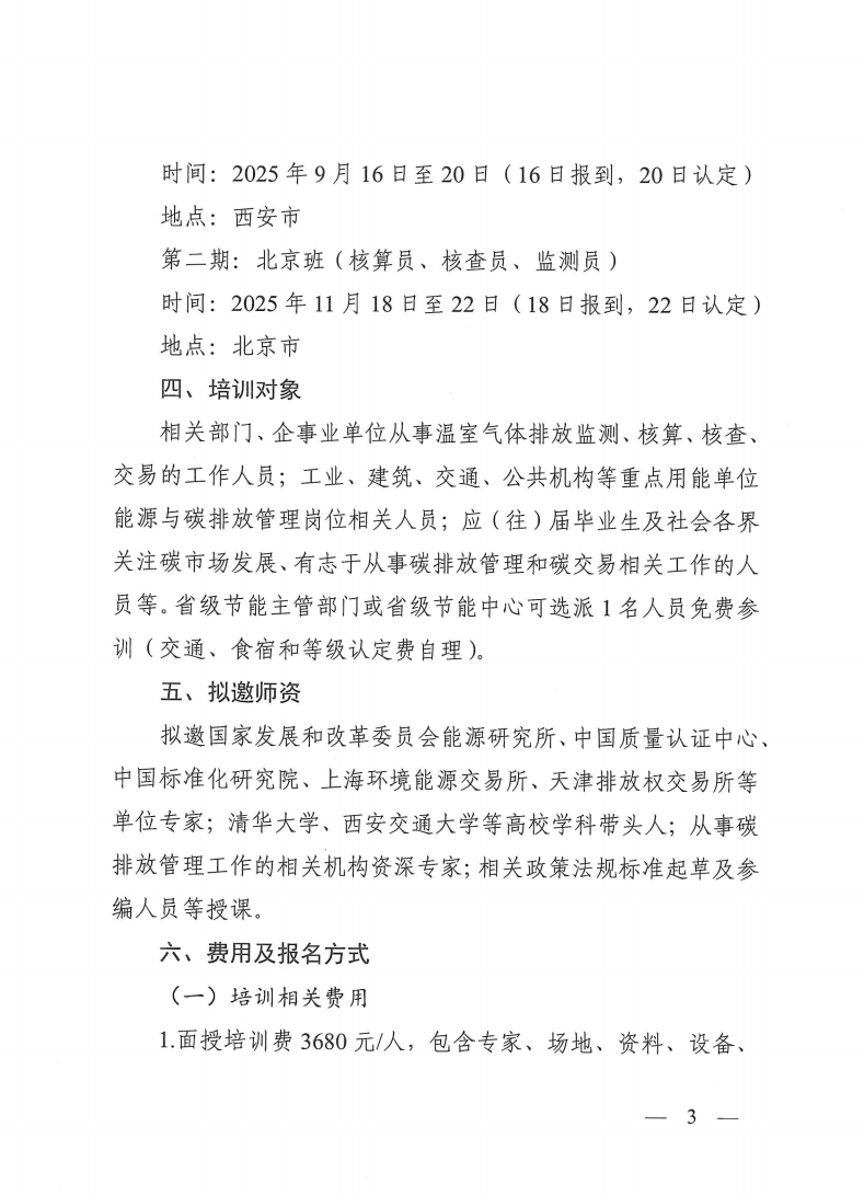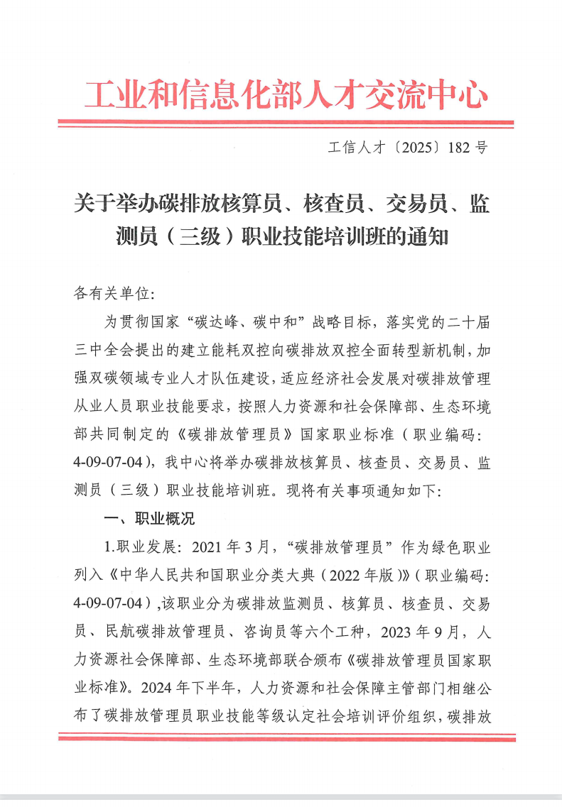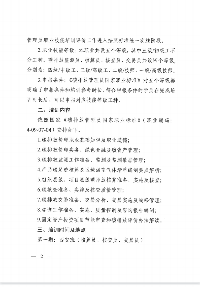 关于举办碳排放核算员、核查员、交易员、监测员(三级)职业技能培训班的通知