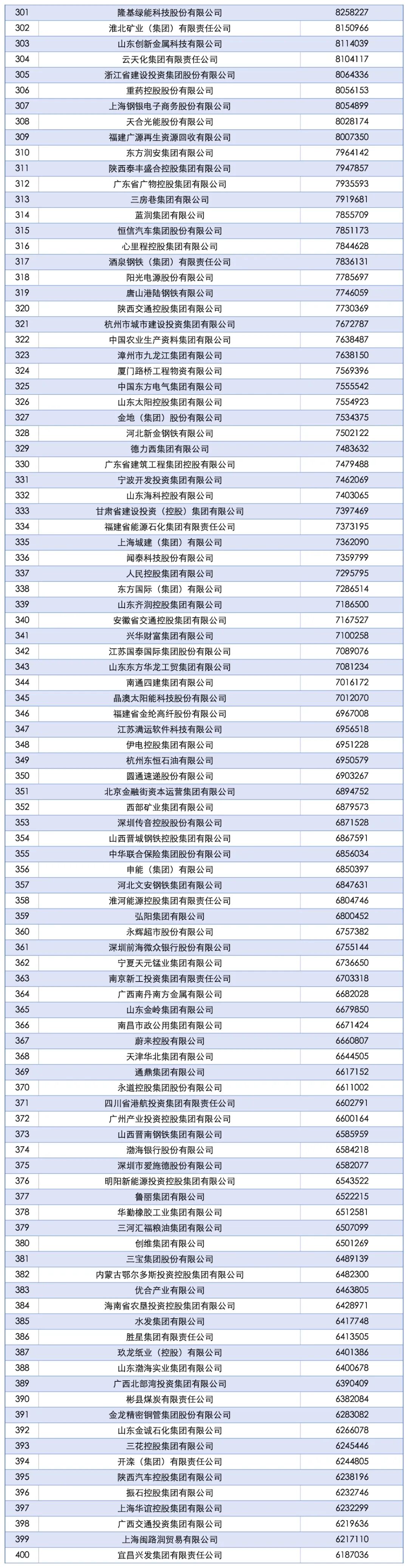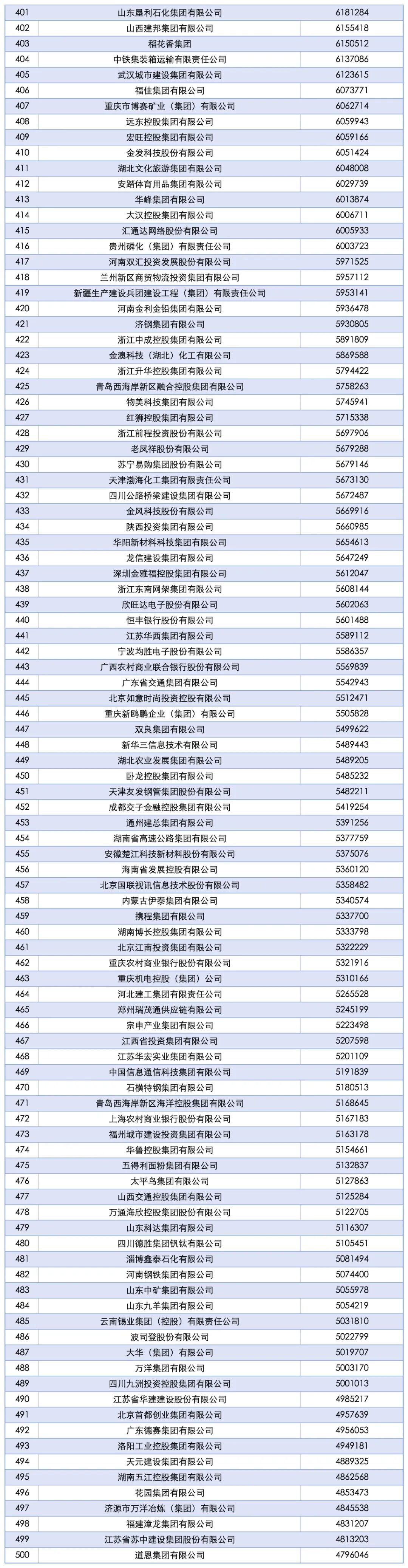 “2025中国企业500强” 榜单