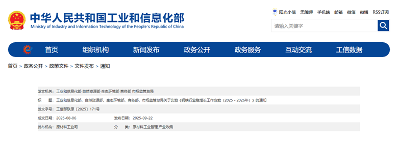五部门关于印发《钢铁行业稳增长工作方案(2025-2026年)》的通知